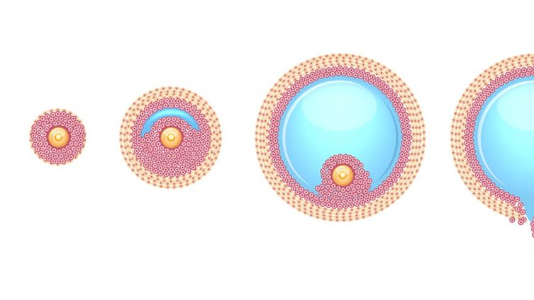 Tuż po zakończeniu miesiączki przysadka mózgowa rozpoczyna produkcję hormonu folikulotropowego, który wpływa na rozwój pęcherzyków. Jedynie najsilniejszy z nich będzie miał możliwość pęknięcia i wypuszczenia komórki jajowej.